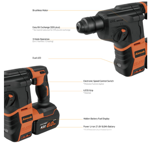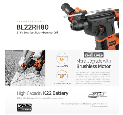 Мощен професионален перфоратор с висококачествен безчетков мотор, подходящ за разпробиване на отвори в бетон и зидария. Високоефективната батерия със SAMSUNG клетки гарантира дълъг експлоатационен живот, благодарение на защитата от претоварване, прегряване и пренапрежение. Съвместим и с батерии от серията BL18 18 V.