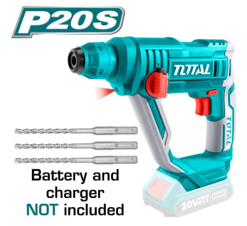 Удобен и лек акумулаторен перфоратор TOTAL SDS+, 20 V, без батерия