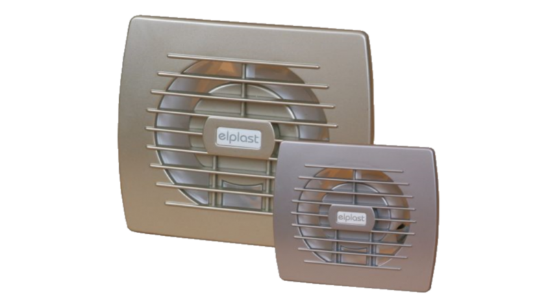 Влагозащитен вентилатор с корпус от висококачествена ABS пластмаса, двигател на втулка и тънък преден панел.