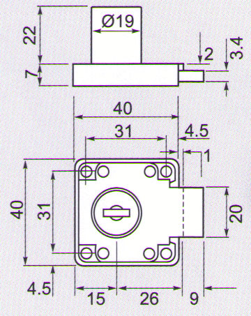 Ключалка, която служи за заключване на вратички от ПДЧ с дебелина 18 мм. Има широко приложение, използва се за заключване, на бюра, офис мебели, контейнери, вратички на гардероби и шкафчета. В комплекта са включени два ключа и насрещник