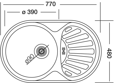 • Комплект : В цената на мивката са включени сифон Ф90 mm с преливник и отвор за съдомиялна или перална, уплътнител, и скоби за вграждане за 3 и 4 см плот.