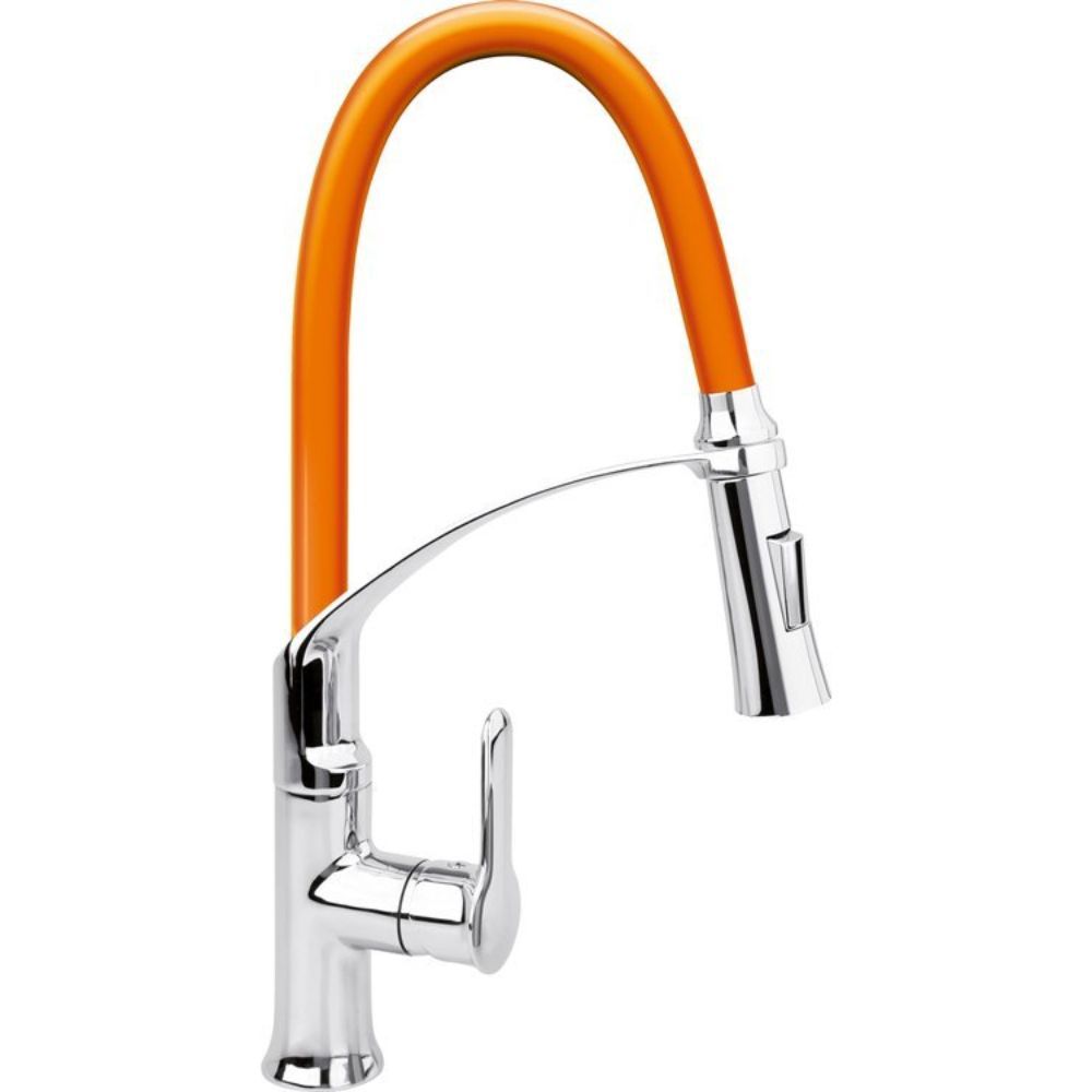 Оранжевият кухненски смесител FALA 2 с гъвкава лебедка (чучур) представлява живо и енергично решение за вашата кухня. Със своята наситена оранжева цветна палитра този смесител не придава просто яркост, но и настроение в кухненския интериор. Неговият смел и стилен дизайн се съчетава с изключително функционални качества. Гъвката лебедка (чучур) позволява лесно миене на съд и подправяне на всяко кулинарно изживяване. FALA 2 в оранжево е идеалният избор за всеки, който желае да придаде жизненост и характер на кухнята си, запазвайки при това удобство и стил.