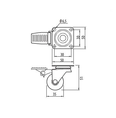 Мебелно колелце Ф 35 мм силиконово СЪС спирачка