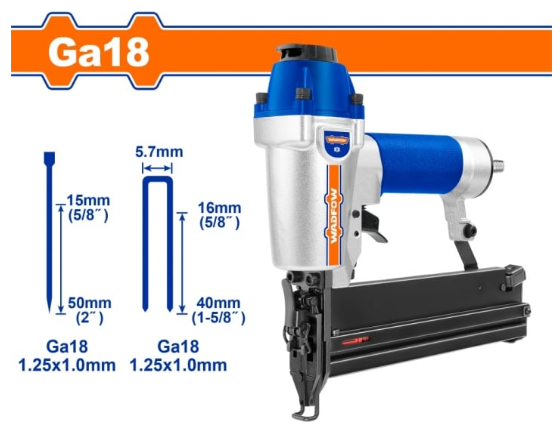 • Размер на скобите: 16-40 мм, GA18, 1.25 x 1.0 мм