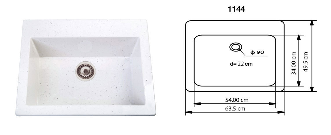 Полимер-мраморна мивка модел 1144 (ИЗБОР НА ЦВЯТ)