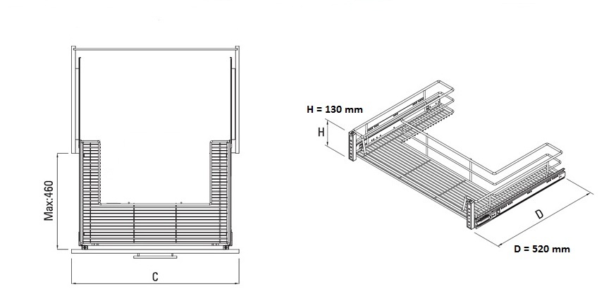 Кошница за бутилки и подправки за вграждане в шкаф с Телескопични Водачи водачи GTV