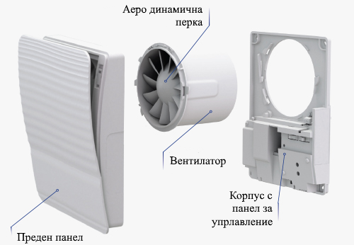 Иновативен вентилатор, със стилен дизайн осигуряващ по високо ниво на комфорт във баня, кухня и други сервзни помещения