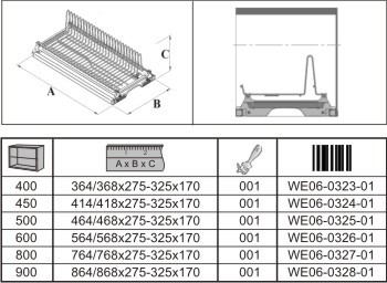 Размер на шкафа 600 мм - размер на отцедника 564 мм