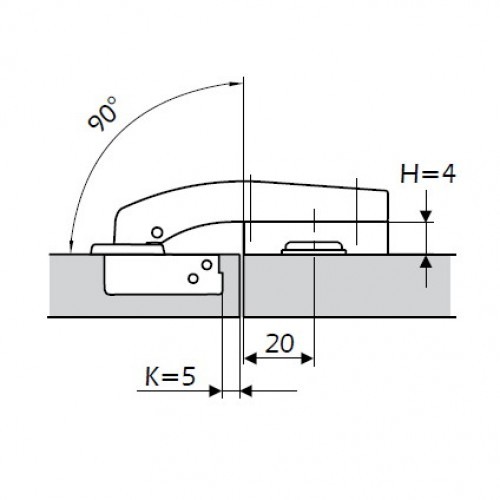 Мебелна панта в една равнина на модел -90°